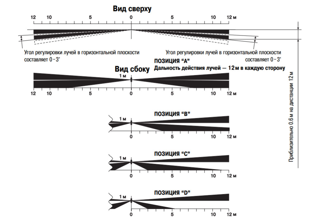 • Область детекции: 12 м в каждую сторону (2 зоны детекции в каждую сторону)
