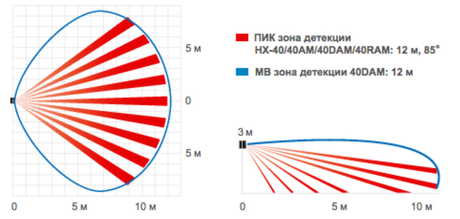 • Область детекции: 12 м, угол 85° (94 зоны детекции)