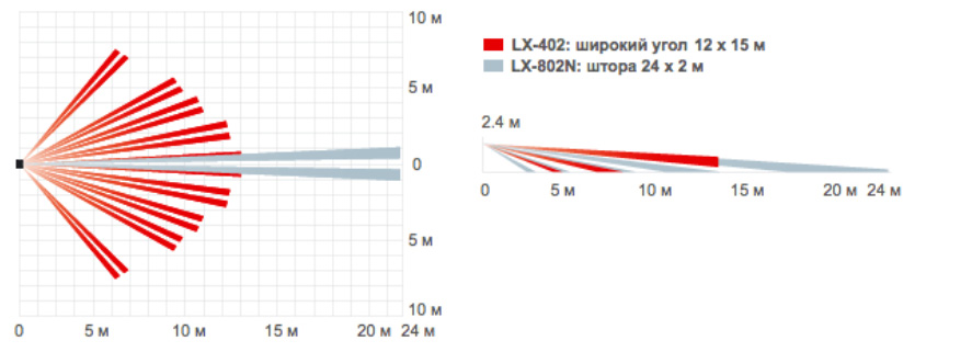 LX-802N – модель повышенной дальности 24 х 2 м (12 зон детекции, 4 с аллеей для животных).