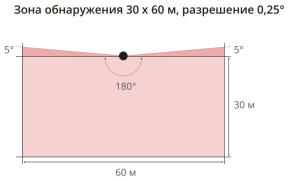 • Область обнаружения: 30 x 60 м, 190 градусов