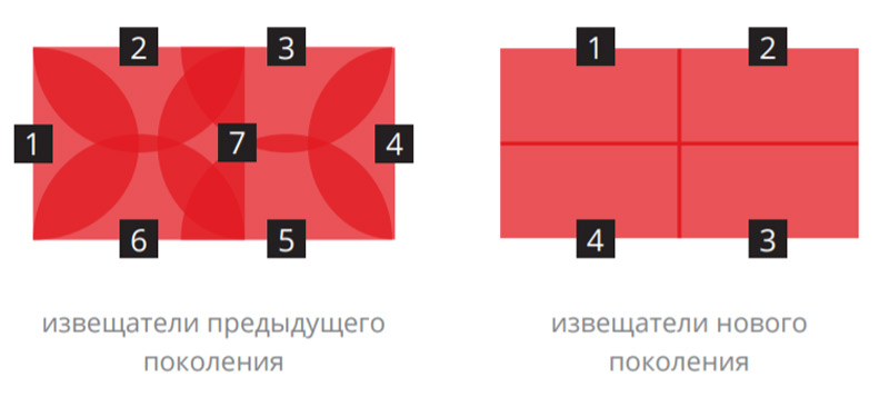 Увеличенная дальность и прямоугольная форма рабочей зоны позволяют более эффективно использовать извещатели для защиты больших пространств. Для охвата одной и той же территории потребуется меньше устройств.