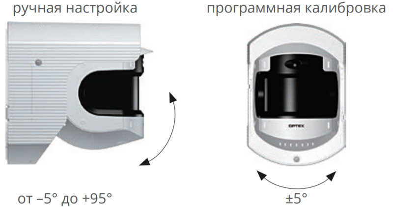 • Высокая чувствительность для обнаружения идущего человека и средняя для обнаружения попыток перелезть через ограждение