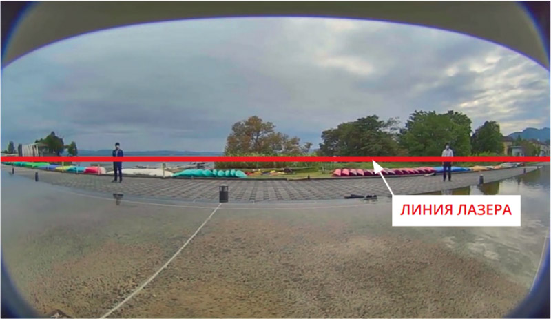 Контрольная линия лазера и видеоизображение рабочей зоны для помощи при настройке извещателя.