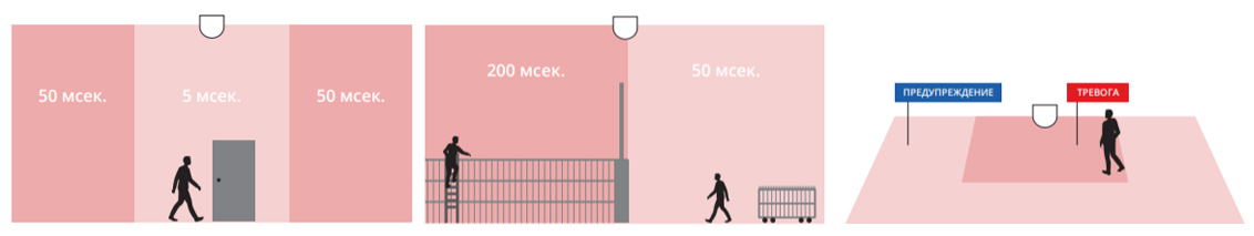 Гибкая настройка зоны обнаружения и алгоритмов срабатывания