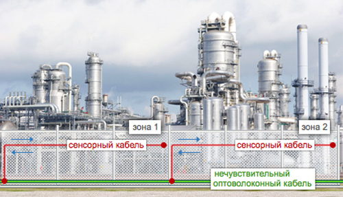 Системы Fiber SenSys могут использоваться в условиях взрыво- или пожароопасных сред. Это обусловлено тем, что в располагаемом непосредственно по периметру чувствительном кабеле распространяется только световой сигнал, а все электрические и токопроводящие части выносятся за пределы опасной зоны.