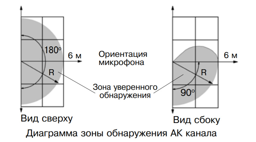 • Максимальная дальность обнаружения АК канала: не менее 6 м
