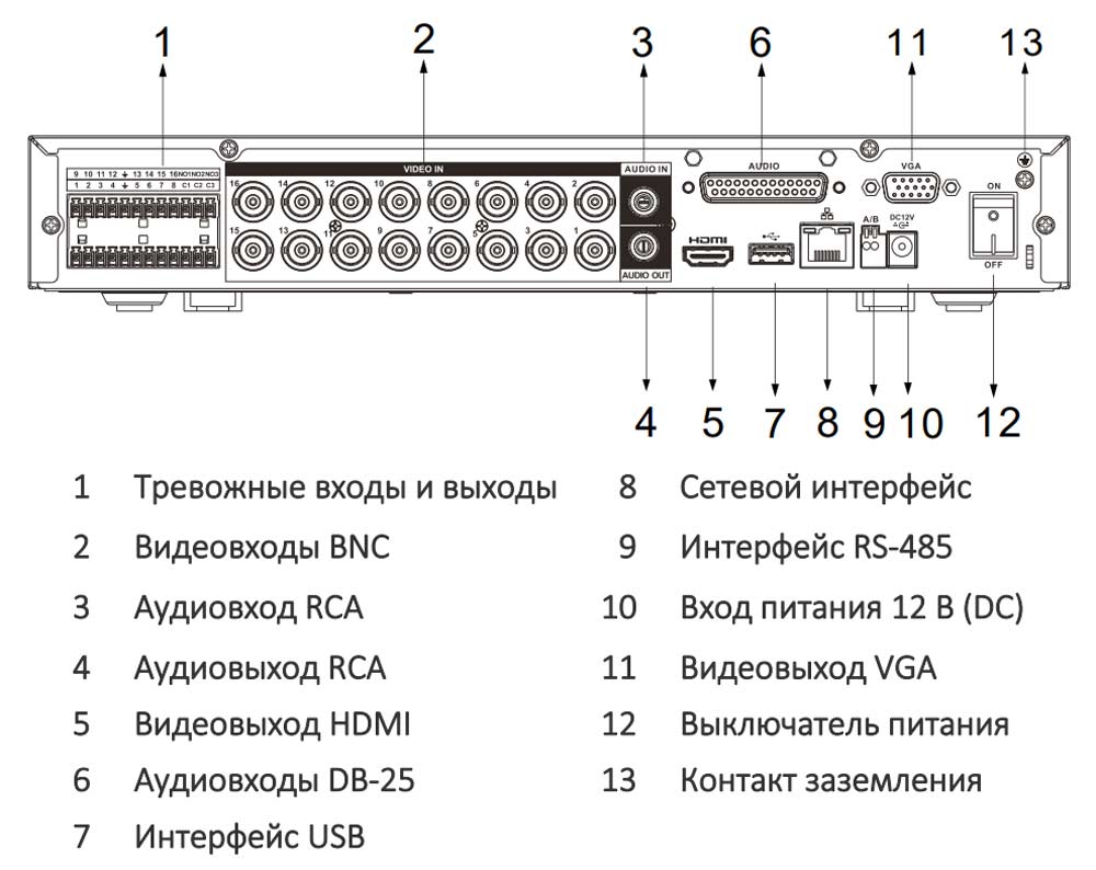 • Аналоговые каналы: 16 BNC (автоматическое определение типа видеосигнала по умолчанию, возможность выбора вручную HDCVI, AHD, TVI и CVBS)