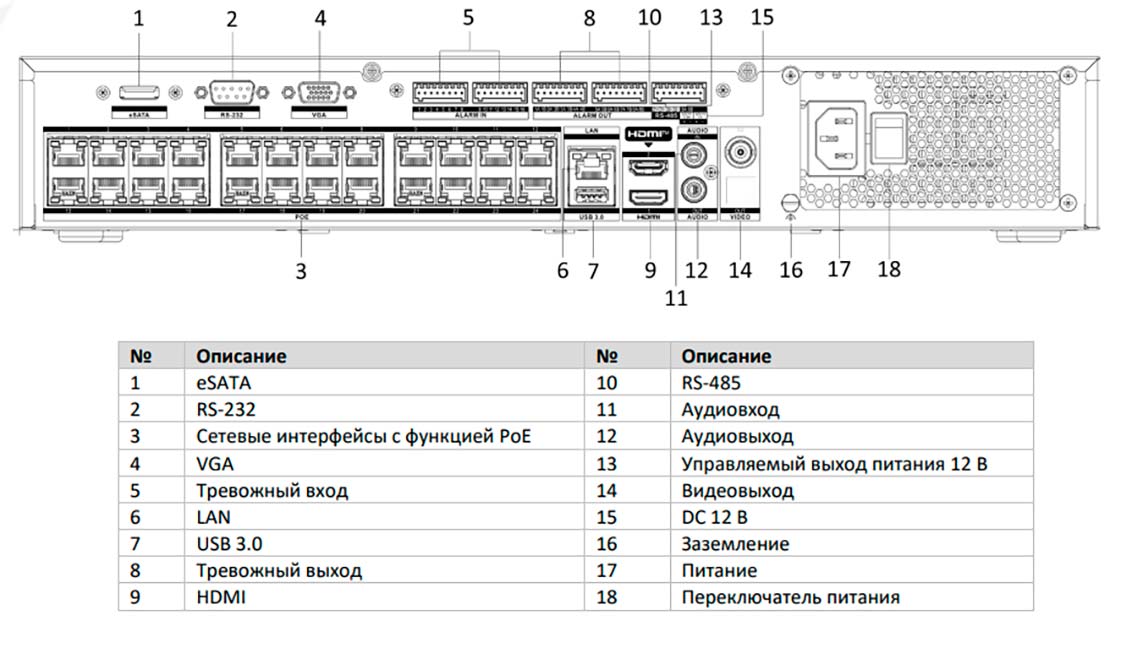 *: если включен режим Ultra HD, сетевой видеорегистратор поддерживает до 8 каналов 32 Мп / 24 Мп IP-видеовходов.