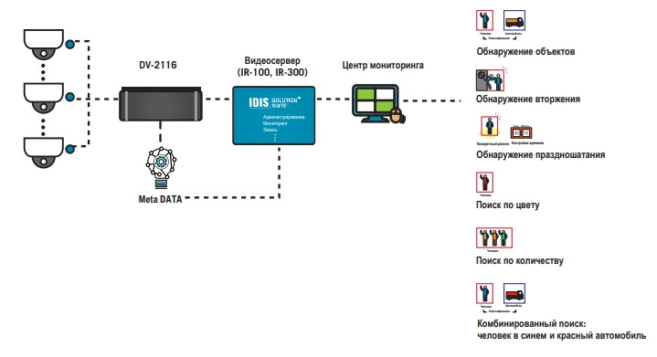 Позволяет получить доступ к следующим видам аналитики:• IDIS Deep Learning Analytics