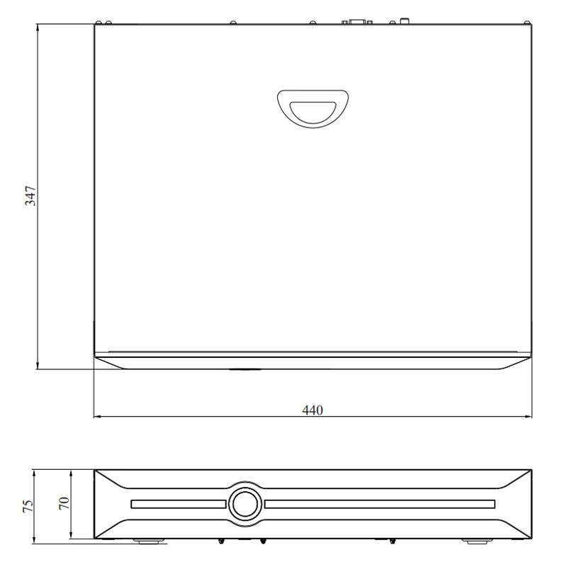 - Габаритные размеры: 440(Ш) × 347(Г) × 75(В) мм