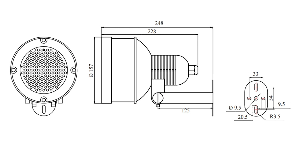 Основные технические характеристики прожектора включают температурный диапазон эксплуатации от –40 до +60 °С и максимально допустимую потребляемую мощность до 18 Вт (16 Вт по PoE). При своих компактных габаритах (248×157 мм) и весе 2 420 г устройство легко интегрируется в существующие системы видеонаблюдения, не требуя громоздкого оборудования.