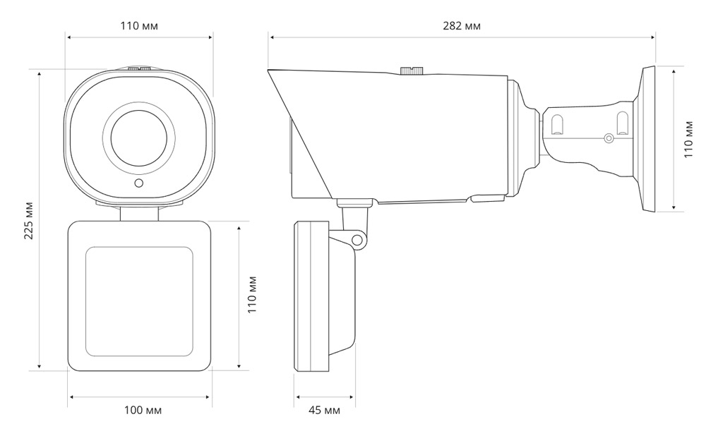 Мощный выносной ИК-прожектор обеспечивает подсветку территории в темное время и позволяет вести видеонаблюдение в круглосуточном режиме.