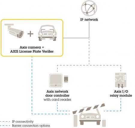 Комплект AXIS P1445-LE-3 — это гибкое решение, отвечающее вашим текущим потребностям и способное к расширению в соответствии с изменением текущих требований. В самом базовом варианте приложение поддерживает «белые» и «черные» списки объемом до 1000 номерных знаков каждый. С их помощью можно легко определить, имеет ли тот или иной автомобиль право въезжать на контролируемую территорию. Предусмотренная поддержка сетевого дверного контроллера AXIS A1001 дает возможность расширить систему, чтобы контролировать доступ автомобилей на основании дополнительных критериев — например, дата, время, место.