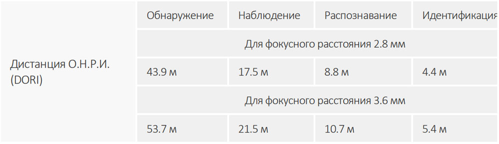 • Фокусное расстояние: 2.8мм / 3.6 мм
