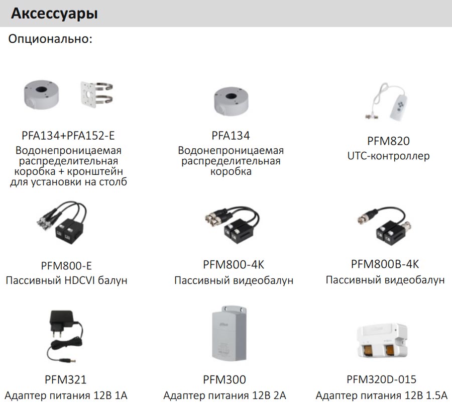 • Дополнительное оборудование для видеонаблюдения