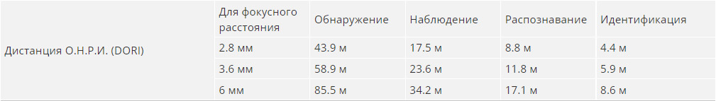 • Фокусное расстояние: 2.8 мм / 3.6 мм / 6 мм