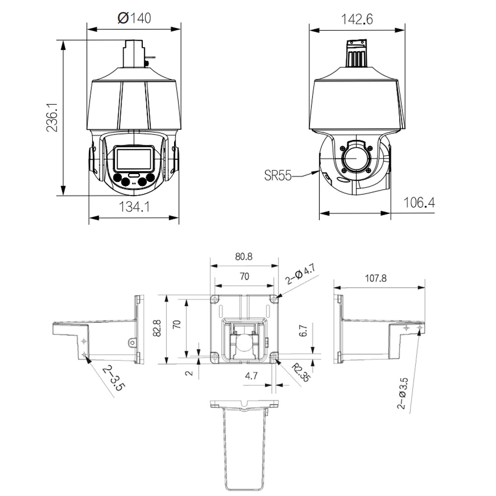 • Размеры: 142.6 мм × 140 мм × 236.1 мм