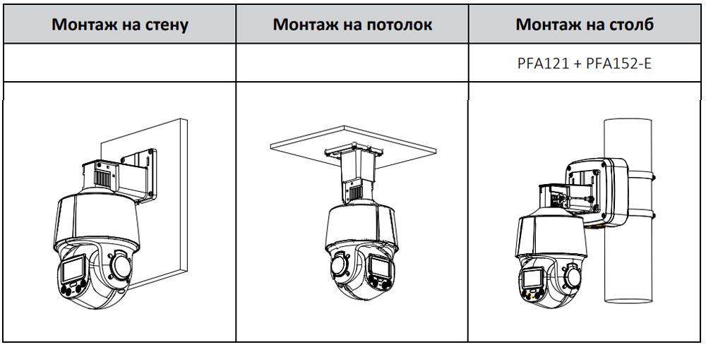 • Диапазон поворота и наклона: Поворот: 0° ~ 355°; Наклон: -15° ~ 90°