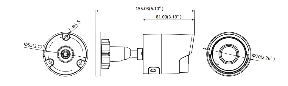 • Размеры Камера: Φ 70 × 155.03 мм (Φ 2.8 × 6.1″)
