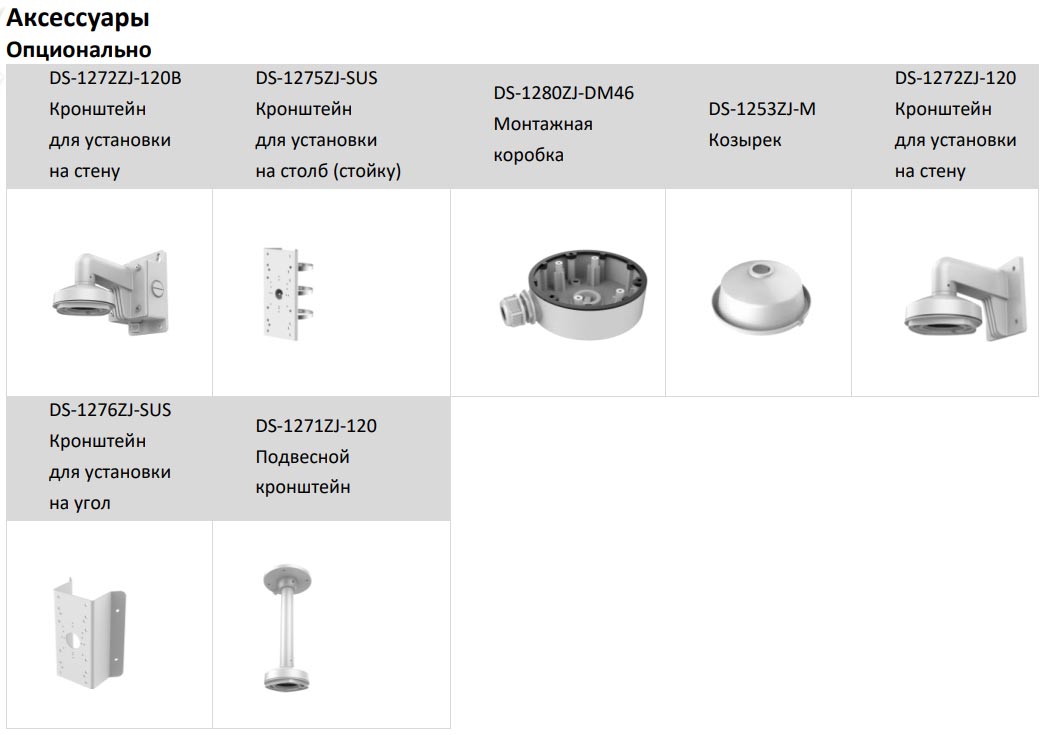 • Дополнительное оборудование для видеонаблюдения