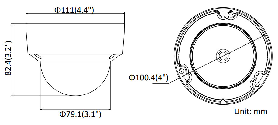 • Размеры: Камера: Φ 111мм × 82.4мм / Коробка: 134мм × 134мм × 108мм