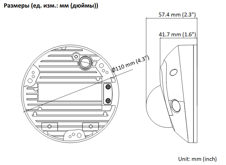 Настройка угла обзора камеры | Поворот: ±30°; Наклон: 0-75°; Вращение: 0-360° |