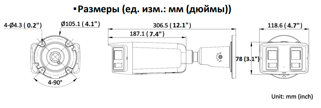 • Размеры: 118.6 × 105.1 × 306.5 мм (4.7 × 4.1 × 12.1″)