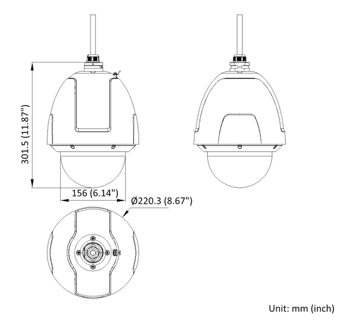 • Размеры: Φ 220 × 302 мм (Φ 8.66 × 11.89″)