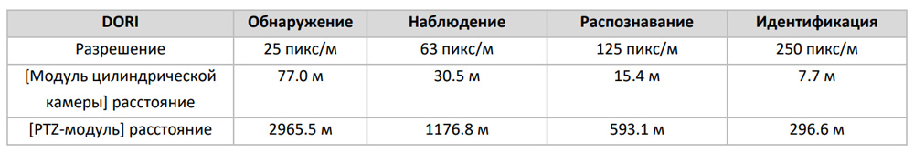 - Фокусное расстояние: Модуль цилиндрической камеры: 4 мм, PTZ-модуль: от 6 до 252 мм