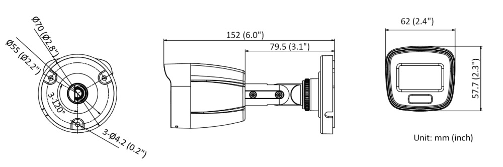 • Размер камеры: 57.7 × 62 × 152 мм (2.3 × 2.4 × 6.0″)