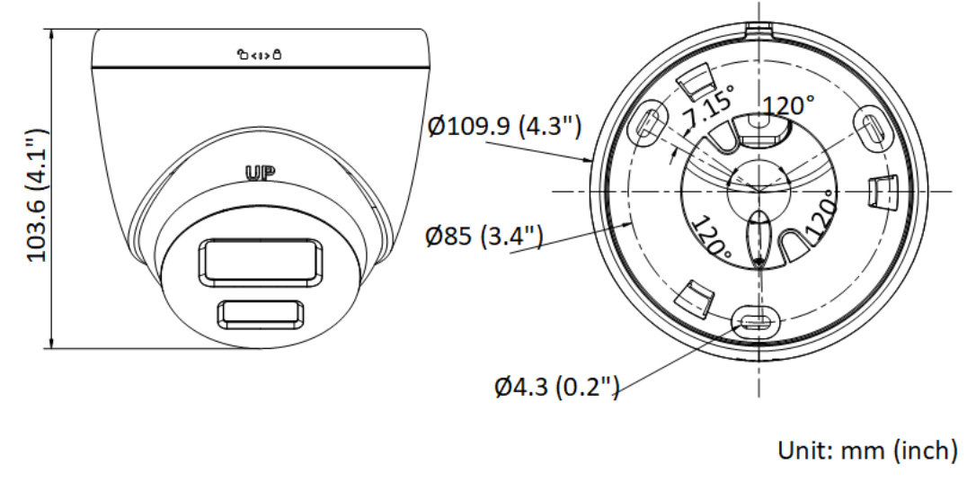 • Размеры: Ø 109.9 × 103.6 мм (Ø 4.3 × 4.1″)