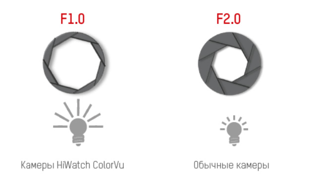 Апертура F1.0 позволяет собирать больше света для получения более ярких изображений. Объектив камер может фокусировать на матрицу в 4 раза больше света чем обычные камеры, и это дает возможность делать изображение намного ярче.
