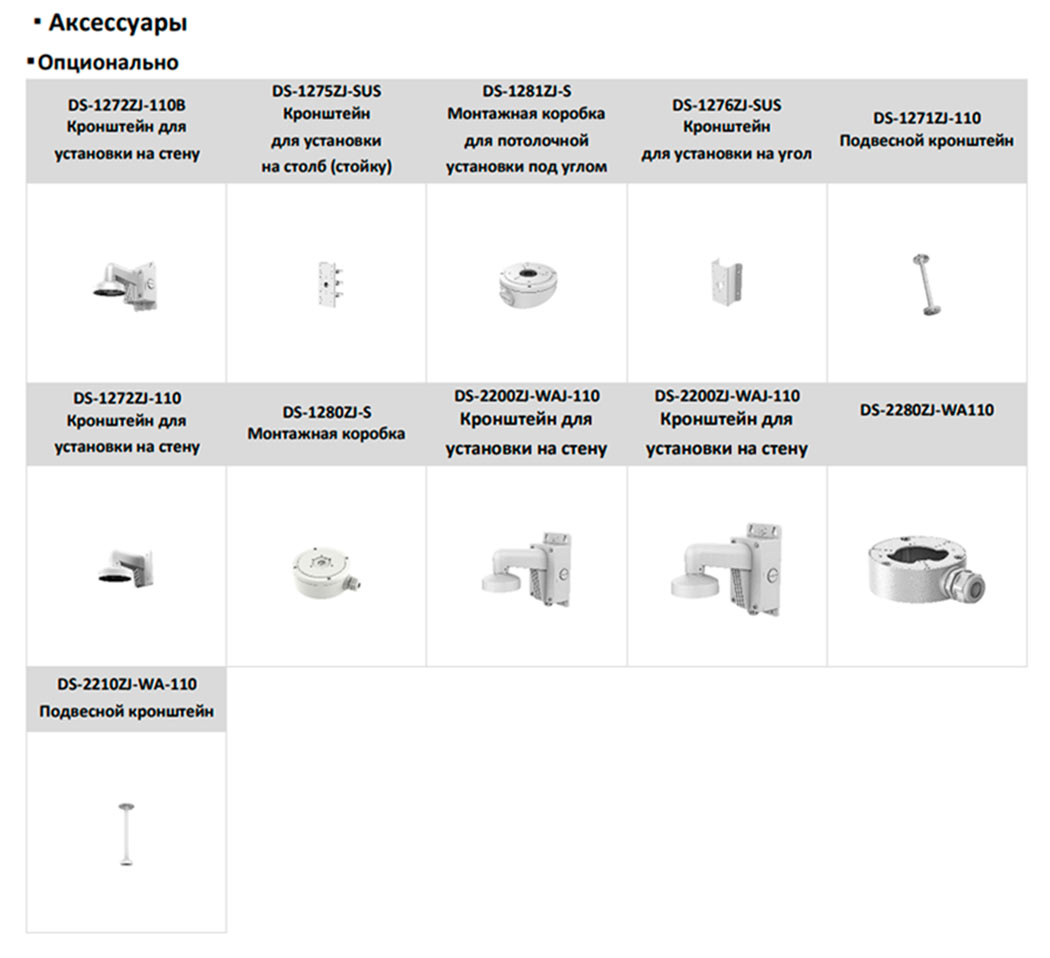 • Регулировка угла Поворот: от 0° до 360°; наклон: от 0 до 75°; вращение: от 0 до 360°