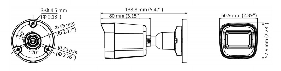• Размеры: 60.9 × 57.9 × 138.8 мм