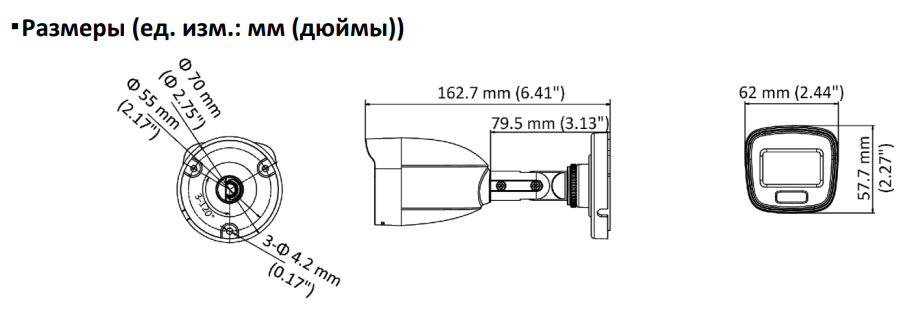 • Фиксированный объектив 2.8 мм и 3.6 мм