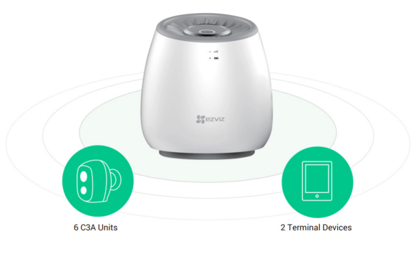 К базовой станции WLB можно подключить до 6 камер C3A одновременно. А также WLB может работать как роутер, раздавая Wi-Fi 2,4 ГГц и 5 ГГц двум дополнительным устройствам.