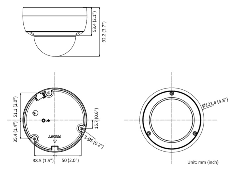 • Размер камеры: Ø 121.4 × 92.2 мм