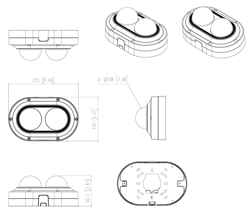 IP-камера уличная антивандальная купольная, с ИК подсветкой 25 м имеет 2 встроенных моторизованных варифокальных объектива 3.54 - 6.69 мм.
