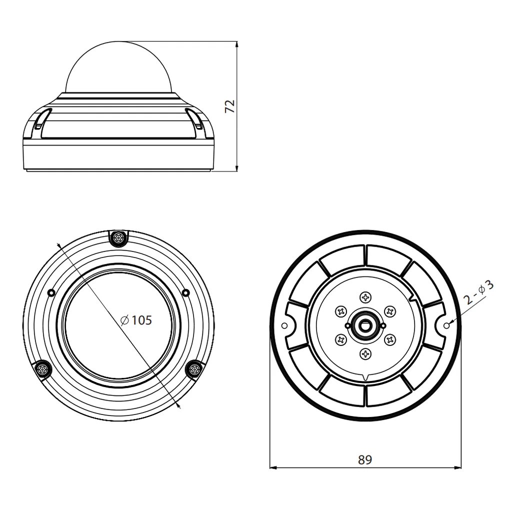 - Минимальная освещенность (Цвет): 0.003 лк @ F2.2 цвет/ 0 лк @ F2.2 ч/б (ИК вкл.)
