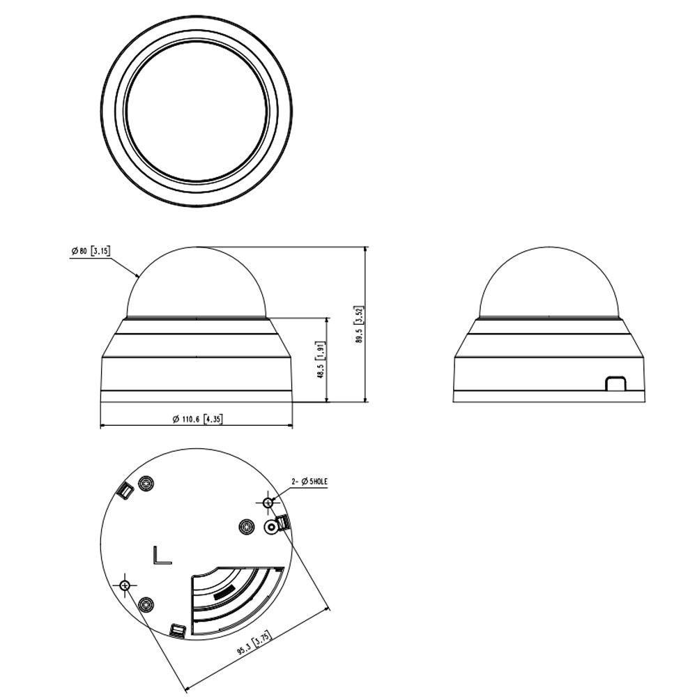 Камера питается через PoE (IEEE802.3af, Class3) и потребляет максимально 7.5 Вт. Рабочая температура составляет от -10°C до +55°C. Камера имеет диаметр 110 мм и высоту 89.5 мм, а ее вес составляет 360 грамм.