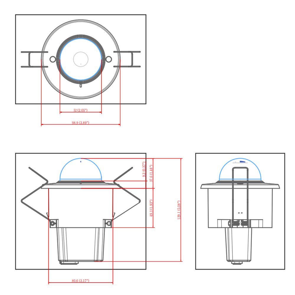 Камера выполнена в компактном пластиковом корпусе и предназначена для встраиваемой (врезной) установки в потолочные/стеновые фальш конструкции.
