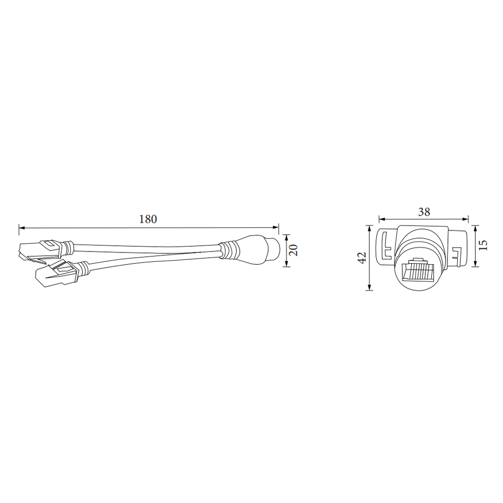 - Габаритные размеры: 180(Д)×20(Ш) мм – входная часть; 42(Д)×38(Ш)×15(В) мм – выходная часть