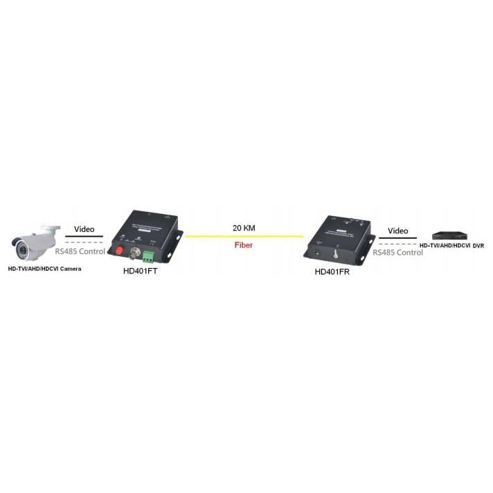 Данный комплект предназначен для передачи видеосигнала HDCVI/HDTVI/AHD/CVBS и сигнала управления RS485 по одномодовому оптоволоконному кабелю на расстояние до 20км.