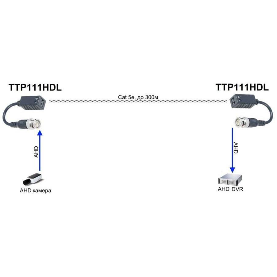 Пассивный приемомередатчик TTP111HDL предназначен для передачи аналоговых видеосигналов высокой четкости (HDCVI/TVI/AHD) и композитного видеосигнала (CVBS) по кабелю витой пары на расстояние до 400м. При подключении к активному передатчику расстояние передачи увеличивается до 500м. Не требует источника питания.