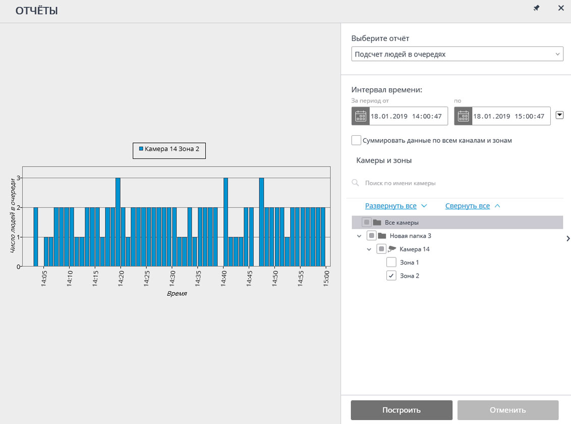В поле Выберите отчет установите значение Подсчет людей в очередях.