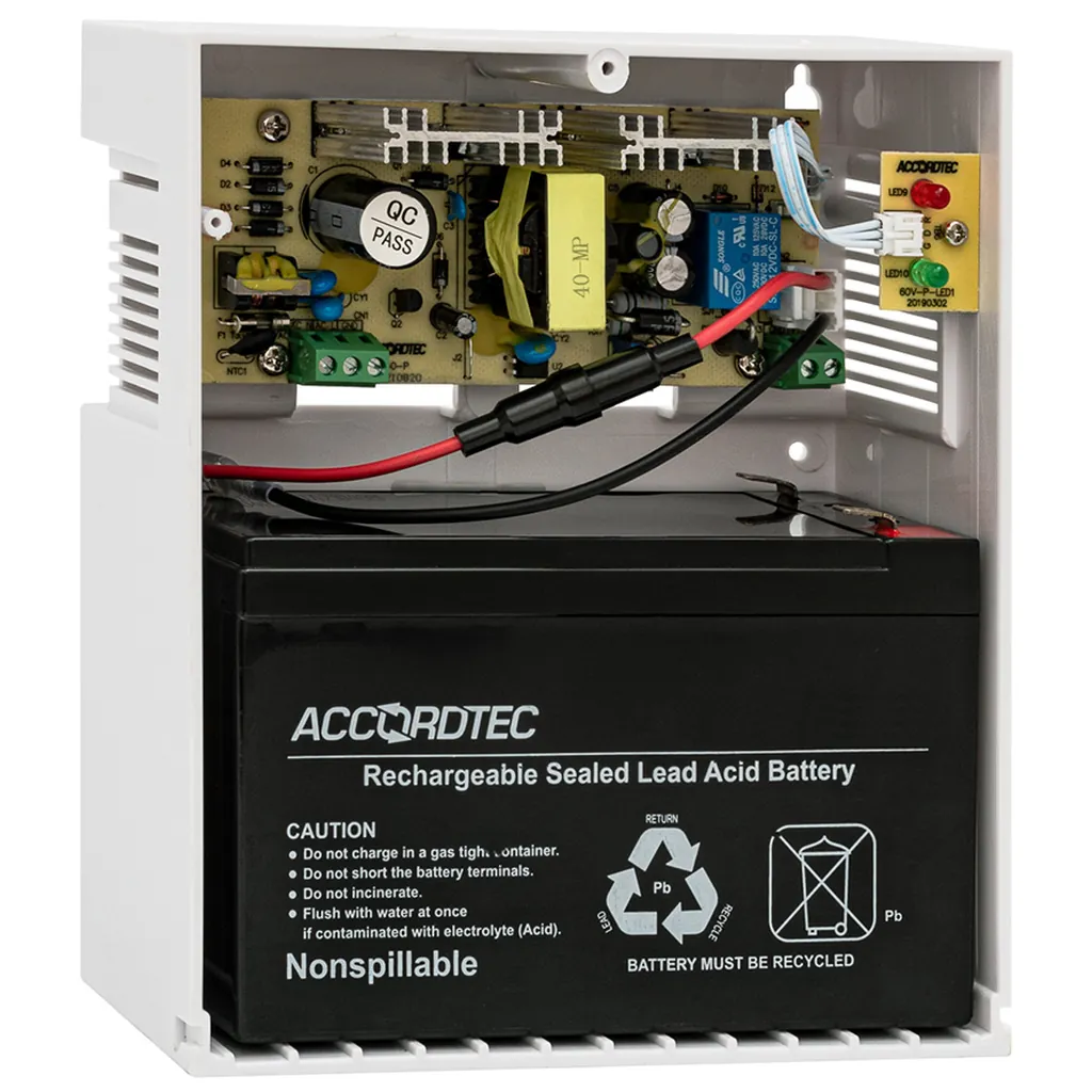 Блок бесперебойного питания AccordTec ББП-60 исп. 1 предназначен для надежного обеспечения электропитанием охранных, пожарных сигнализаций, систем видеонаблюдения и контроля доступа. Устройство обеспечивает стабильное напряжение 12 В и защищает оборудование от перебоев в сети, перегрузок и коротких замыканий. Применение герметичных свинцово-кислотных аккумуляторов делает систему долговечной и безопасной в эксплуатации.