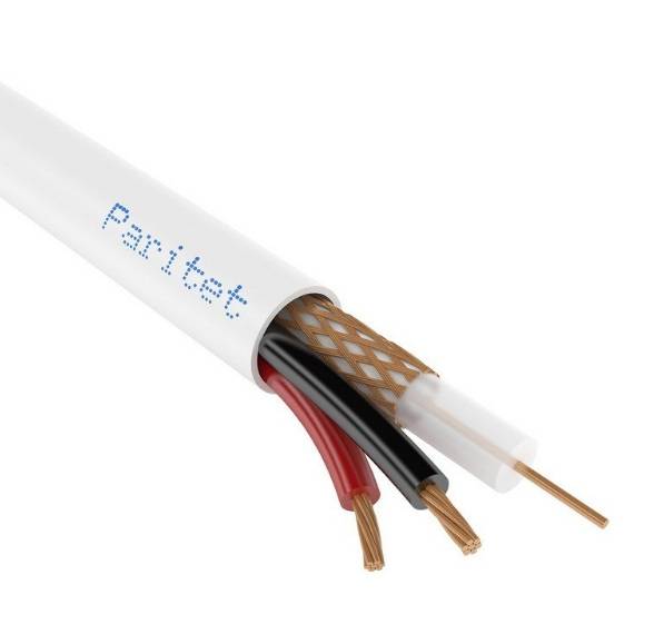 Комбинированный кабель КВТ-В-2 2х0,35 для систем аналогового видеонаблюдения имеет однопроволочный радиочастотный элемент РК 75-2-111, экран (оплётка медными проволоками плотностью не менее 40%) и две жилы питания сечением 0,35 мм.кв. Предназначен для одиночной внутренней стационарной прокладки.