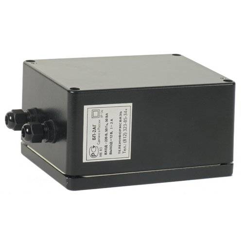 Стабилизированный источник питания БП-2А-Г рекомендован компанией Телеинформсвязь для питания разнообразной радио и электроаппаратуры переменным напряжением 24 В, током не превышающим 2 А. Оптимальные для использования устройства температуры находятся в пределах от -40°С до +40°С при относительной влажности воздуха до 80%. Для питания данной модификации требуется номинальное переменное напряжение сети 220 В ± 15 В с частотой 50 Гц. Стандартно потребляемый от сети ток не превышает 0,2 А. На выходе модель БП-2А-Г выдает напряжение 24 В ± 1 В, что и определяет сферу применения прибора. При непрерывной круглосуточной работе получаемый выходной ток составляет 2 А. Класс защиты от поражения электрическим током соответствует 2 категории, что не требует использования никакого заземления.