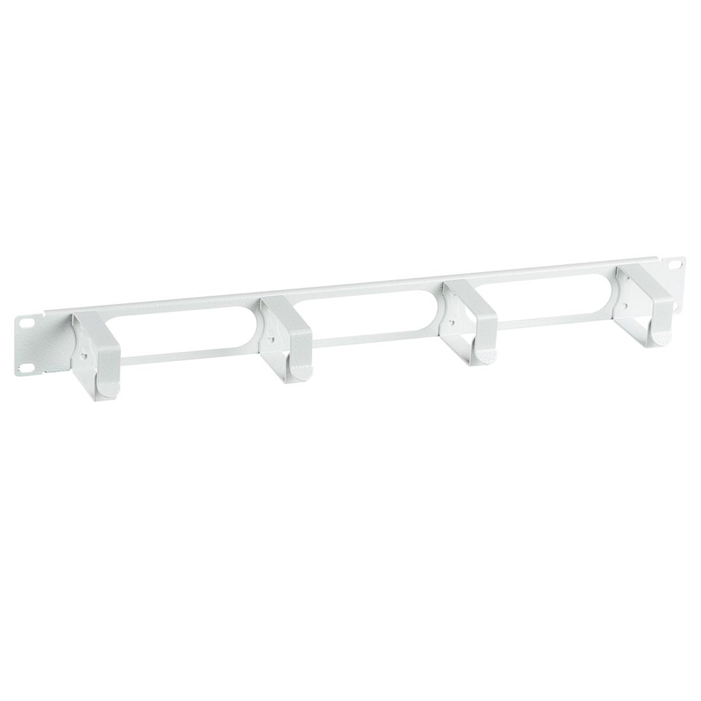 На лицевой стороне органайзера размещены 4 металлических кольца для фиксации кабеля.