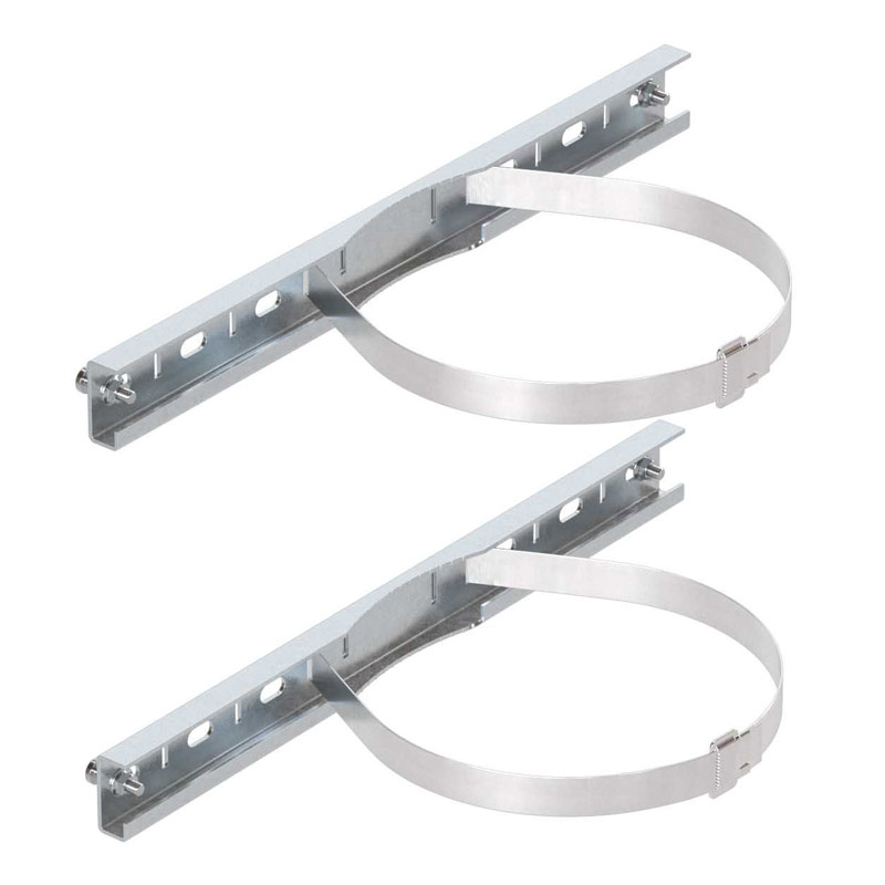 Крепежные профили изготавливаются из оцинкованной стали толщиной 2 мм, стяжные хомуты – из нержавеющей стали AISI 304.